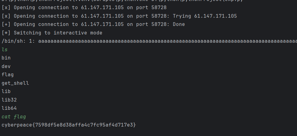 [+] Opening connection to pwn.challenge.ctf.show on port 28259: Done