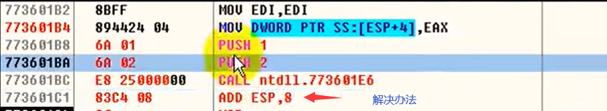 当我们在堆栈中进行堆栈的操作的时候,一定要保证在 ret 这条指令之前,esp 指向的是我们压入栈中的地址,函数执行到 ret 执行之前,堆栈栈顶的地址 一定要是 call 指令的下一个地址。