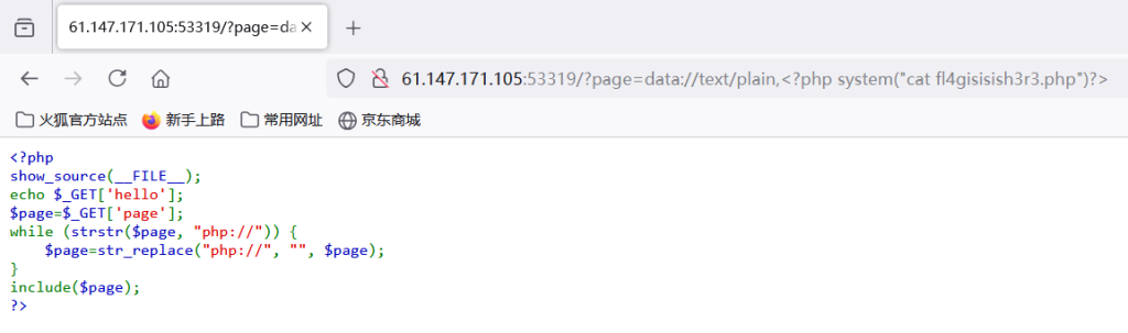 fl4gisisish3r3.php 这个目录的提示已经很明显了,那么使用cat指令转到这个目录即可