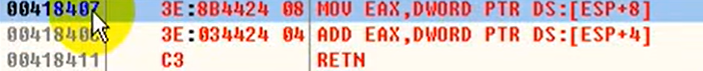 当我们在堆栈中进行堆栈的操作的时候,一定要保证在 ret 这条指令之前,esp 指向的是我们压入栈中的地址,函数执行到 ret 执行之前,堆栈栈顶的地址 一定要是 call 指令的下一个地址。