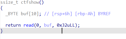 如果我们假设 buf 是在栈帧的顶部定义的,那么 buf 到栈底的距离就是 buf 到 rbp 的距离,即10个字节。这是因为 rbp 指向栈帧的开始,而 buf 从 rbp 向前偏移10个字节。