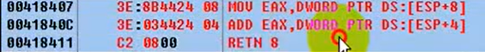 ret 8 是把 ret 和第一种情况的add 两条指令整合成一条指令,在函数内部完成堆栈平衡。