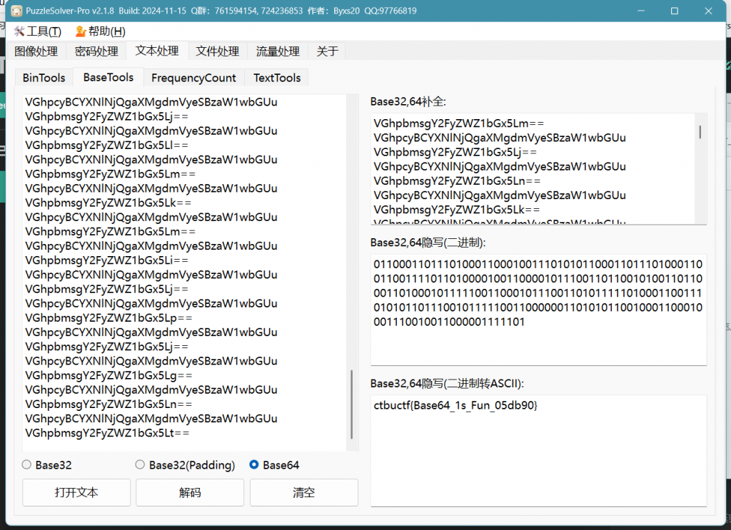 例如,如果输入ctbuctf{x},因为交互效果的原因,当花括号中的第一位内容真的是x时,响应中的Decrypting...部分,会输出成ctbuctf{x},然后抛出错误,如果不是x,只会输出成ctbuctf{x 然后抛出错误