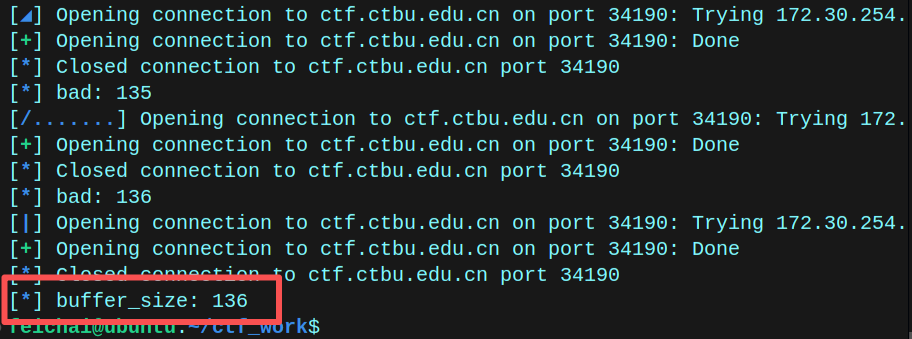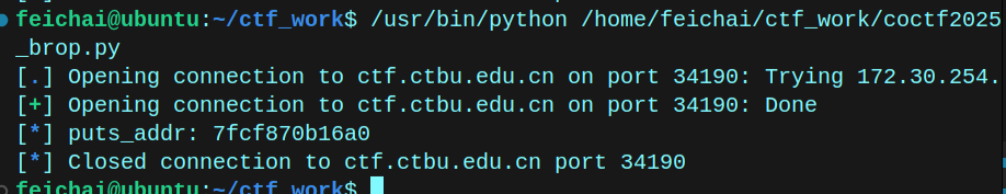 #重复第一个步骤这里再次获取canary地址是因为我们再上一次payload中最后一段写入了main函数所以程序再执行完上一次的paylaod后会重新运行程序这里就重头开始了,又因为程序是需要输入两次而我们又是再第二次输入时进行构造payload返回地址所以此处我们就要再获取一次canary地址