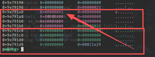 payload3 = b'a'*(0x50-9) + b'b' #这里0x50-9多减一个1是因为方便我们定位