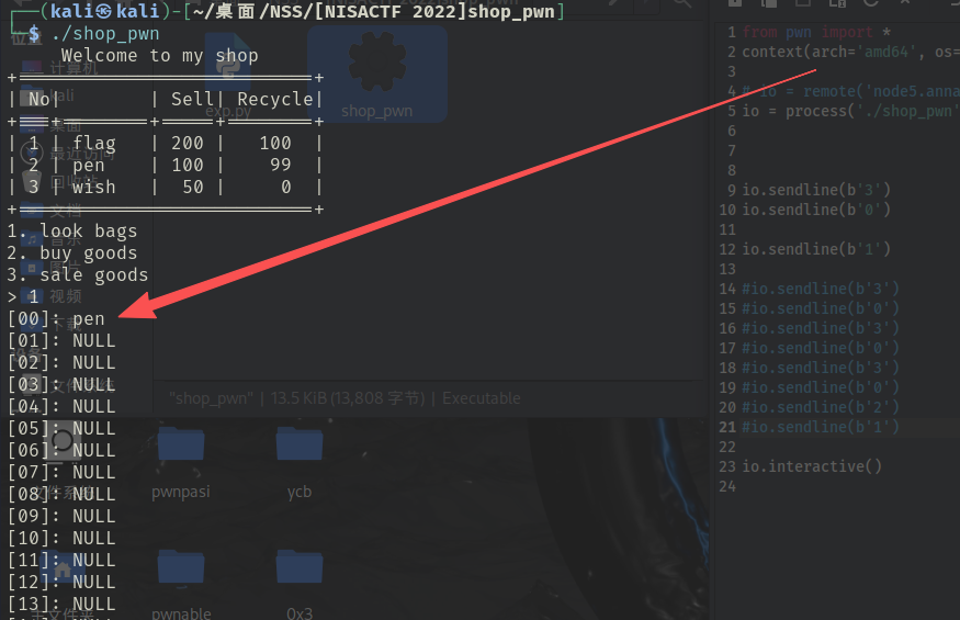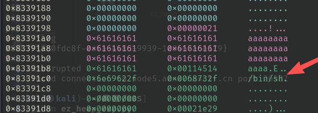 所以当我们再申请的时候,因为大小是一样的,所以还是原来的那个堆块,那个指针也还在,这个时候只要我们对其进行edit操作然后用show去展示内容,就能完成getshell