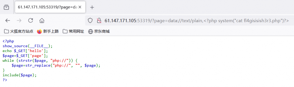 fl4gisisish3r3.php 这个目录的提示已经很明显了,那么使用cat指令转到这个目录即可